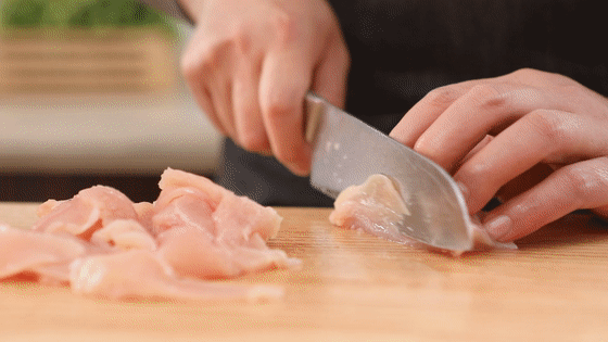 最好买到新鲜的鸡胸肉,冰鲜的胸肉口略差一些。鸡胸肉易熟,不宜翻炒太久。